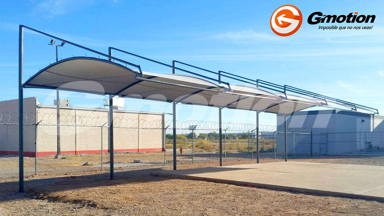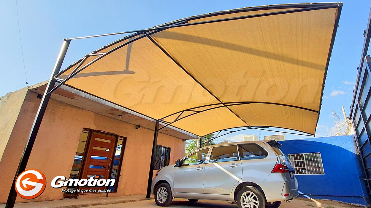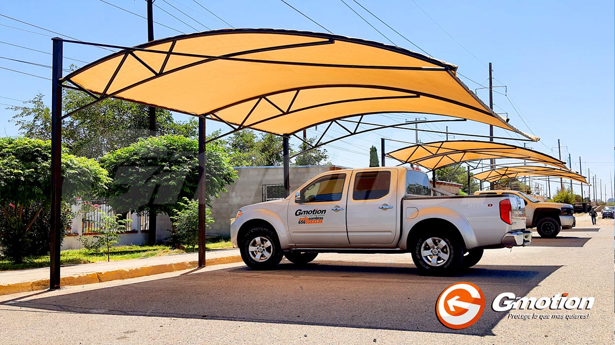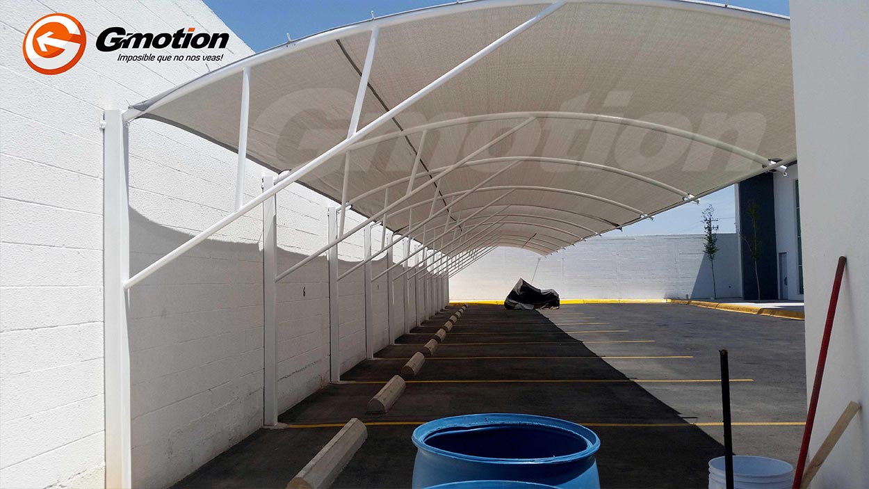 Excelente solución para los estacionamientos, donde se prescinde de las columnas frontales para evitar golpes y que te estaciones o salgas sin preocupación alguna. Su diseño contemporáneo le permite contar con caída de 2 aguas y se compone de columnas posteriores que en algunos casos puede estar a mayor altura de la estructura principal y de esta forma apoyar la carga con tirantes que van hasta el frente o con cabrillas que van por debajo de la estructura.
