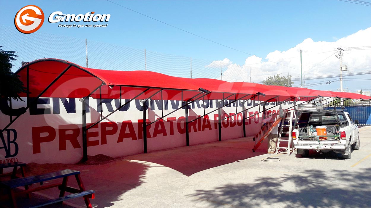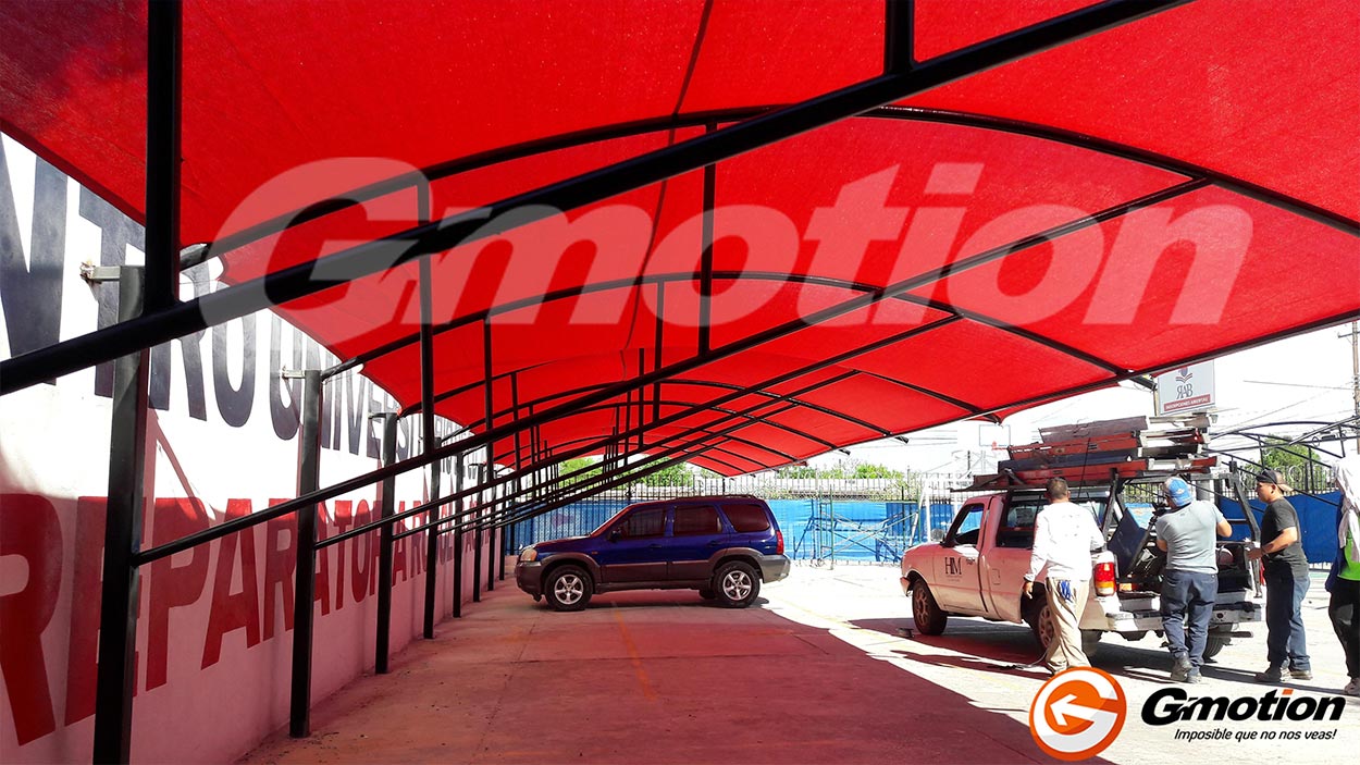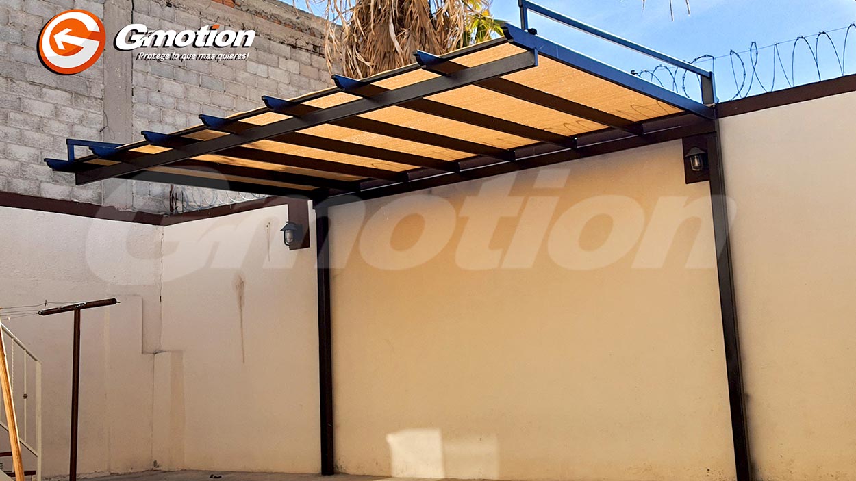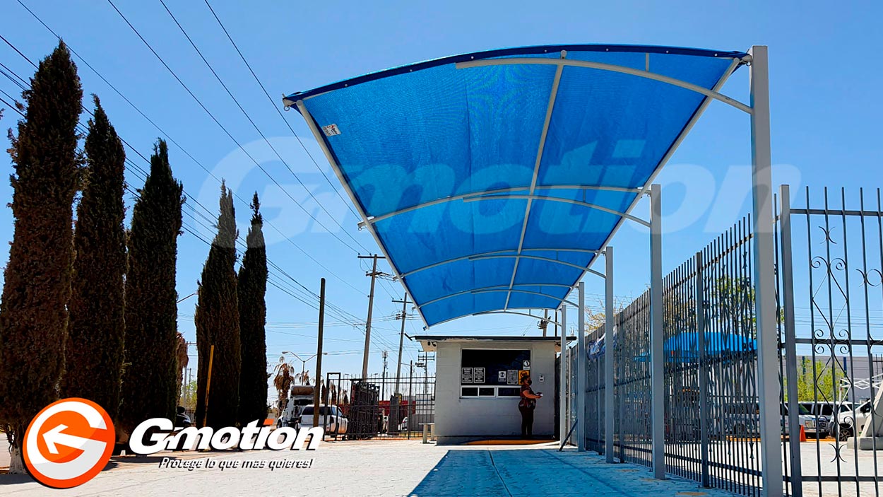 Excelente solución para los estacionamientos, donde se prescinde de las columnas frontales para evitar golpes y que te estaciones o salgas sin preocupación alguna. Su diseño contemporáneo le permite contar con caída de 2 aguas y se compone de columnas posteriores que en algunos casos puede estar a mayor altura de la estructura principal y de esta forma apoyar la carga con tirantes que van hasta el frente o con cabrillas que van por debajo de la estructura.